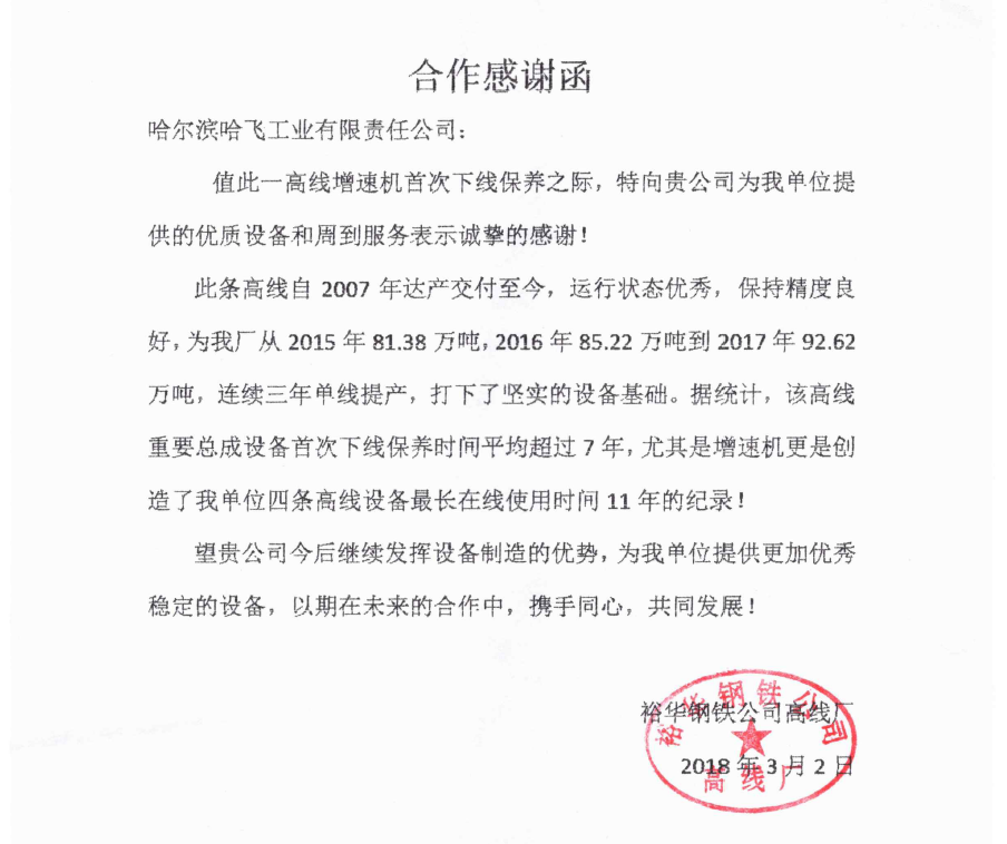 哈爾濱哈飛工業(yè)有限責(zé)任公司旗下的機(jī)電設(shè)備制造產(chǎn)業(yè)是目前國(guó)內(nèi)規(guī)模大、專業(yè)的高速線材軋機(jī)和棒材軋機(jī)整機(jī)及備件的生產(chǎn)制造企業(yè)。公司現(xiàn)坐落于哈爾濱市平房區(qū)汽車零部件工業(yè)園B區(qū),占地面積30000多平方米?,F(xiàn)有員工近550人,其中具有中高級(jí)職稱的研發(fā)及工程技術(shù)人員100余人。 公司曾獲得冶金部授予的“高線軋機(jī)設(shè)備優(yōu)單位”稱號(hào)、國(guó)家技術(shù)進(jìn)步二等獎(jiǎng)等獎(jiǎng)項(xiàng),公司生產(chǎn)的十八項(xiàng)高線軋機(jī)重要部件通過了技術(shù)鑒定... +MORE